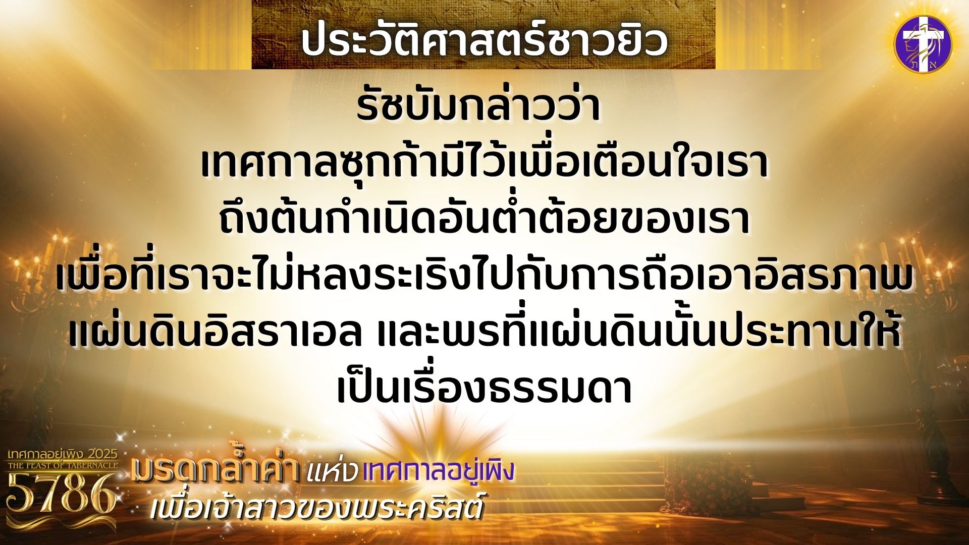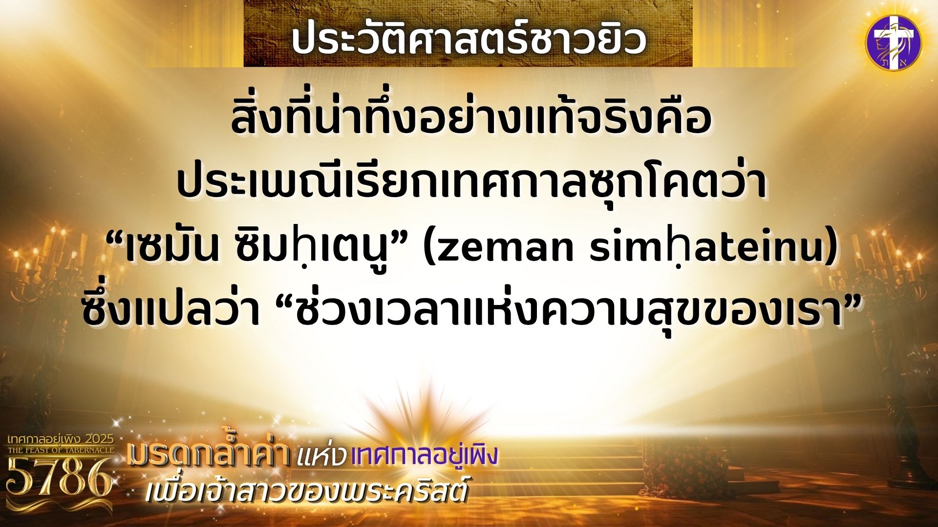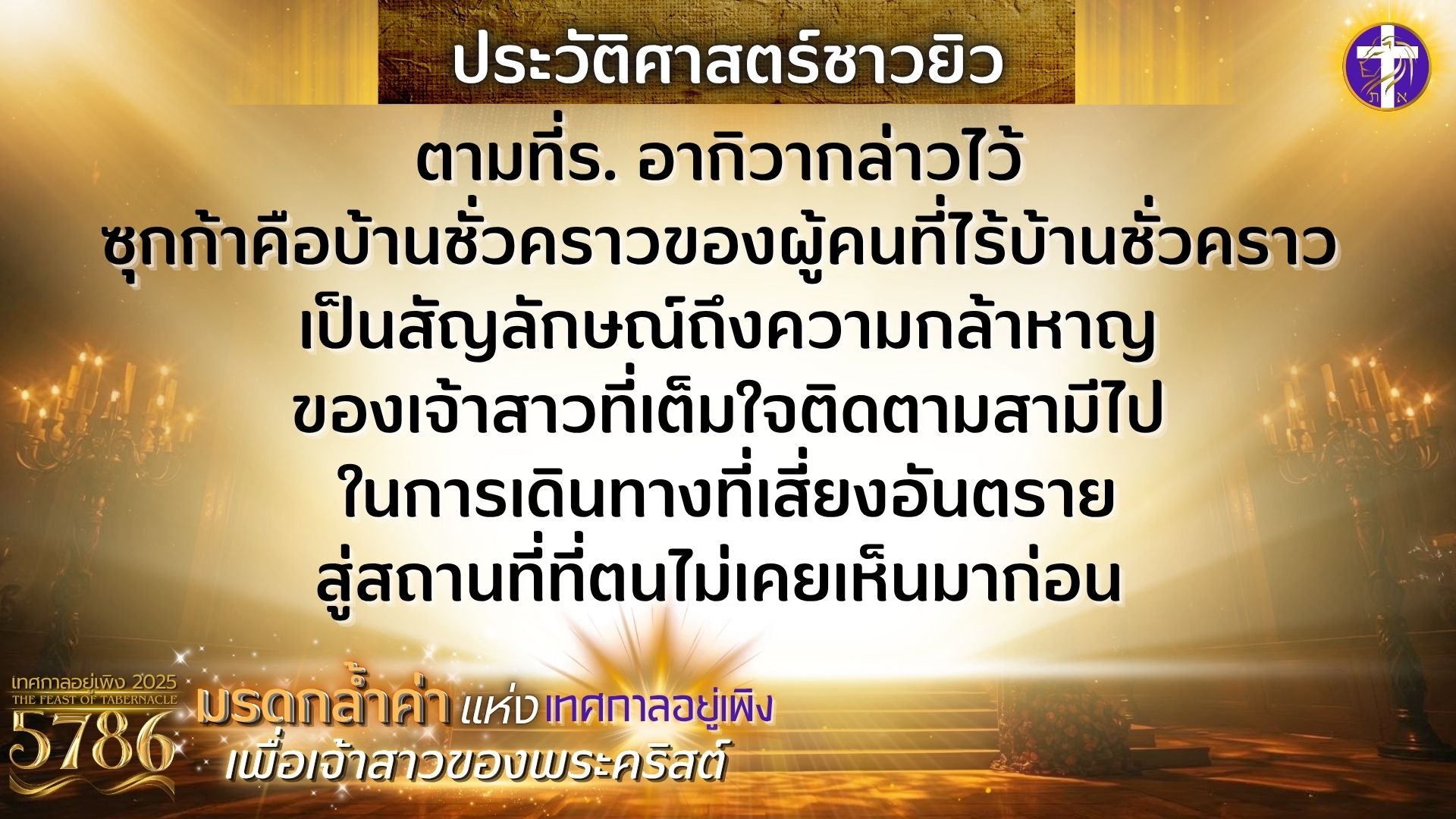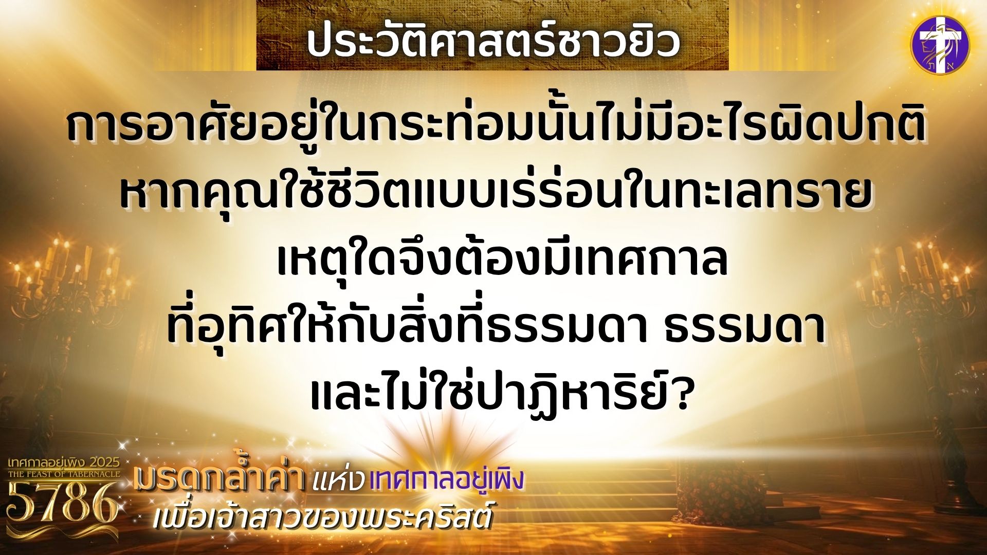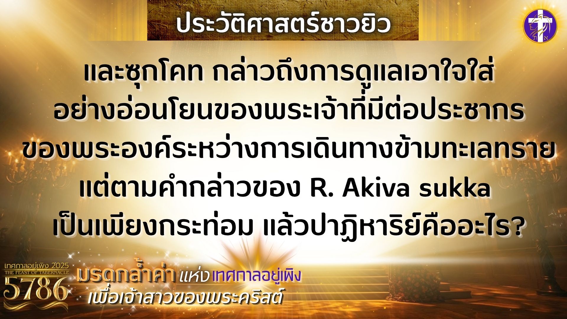 มรดกล้ำค่าแห่งเทศกาลอยู่เพิงเพื่อเจ้าสาวของพระคริสต์ | เกิดอะไรขึ้นในวันที่ซาโลมอนถวายพระวิหาร?? |